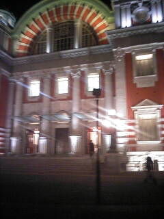 私はこの川に架けられた、堺筋を結んでいる難波橋(なにわばし) を毎日移動ルートとして利用しています。 たまに道路が少し渋滞気味な時、左手に見えるのは・・・・ そうです、中之島公会堂です。 現在の公会堂は平成14年に改装されたものですが 何といっても、照明がすばらしい。 『まるで、建物の宝石箱やー。』(彦麻呂 風) 大阪のシンボルと言えば通天閣と答える人は多いかと思いますが、 北方面の大阪人にとっては、それは何といっても公会堂です。 よく考えると、毎日その宝石箱を見ながら帰宅できると いうのは贅沢かも。 季節もよくなり、船場を散策される方は、公会堂(厳密に言うと、船場 ではないです)からゆっくり南へ下れば、より楽しめるかも。 ただ現在、地下鉄工事が邪魔なのと、日祝の船場はハッキリ言って 淋しいので要注意です。 |