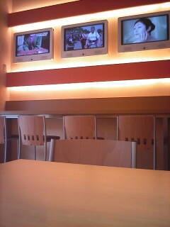『アンドデリ』(参照)、外観はいたって普通ですが、店内に入ると何か違います。 それは、コレです。 ↓ 実は至るところにモニターがあるのです。 このモニター、1台に付き30000円/月で好きなプロモーションが 流せるのです。映像制作の依頼もできるらしいです。 私個人的には、全モニターをジャックしないと効果ないと思いますが・・。 しかしながら、いろいろ考えるなあ。欽ドン賞あげます。 このサイケなトレイとカップはいいかも。 PR |