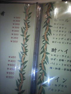 『南の夢』、それは船場の楽園。(参照) 階下には夢の楽園が・・・。 ドアをあけると、そこはオールドハワイ。 心地よくハワイアンが流れる。 しかしながら・・・。 メニュー、思いっきり居酒屋やん。でもどこかハワイアン。 そして、ランチを注文。 この照り焼きチキン定食、上手い。どこかハワイアン。 外人に受けそう。 トイレも、どこかハワイアン。 ハワイに行ったことない私がオススメします。 あなたも、どこかハワイアンを体験してみてください。 PR |