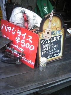 このイラストのモデルになったお店があります。 それは、ギャラリー&カフェバー『フレイムハウス』(参照) この時点で趣味に合う人と合わない人に分かれるでしょう。 私はこの店アリなんです。 中にはいると・・・。 私事ですが、『嫌われ松子の一生』や『下妻物語』の脚本・監督 を手掛けた中島哲也の世界にインスパイアされてまして、どこか 松子のニオイがこの店からするのです ↓ このセンス、大したモンです。(WEBサイトも) ちなみに、店にあるアンティークな品々はオーナー自信が ひとつひとつ集めたものだそうです。 そして二階はウクレレ教室になっており、店内もハワイアンの音色 が心地よく流れてます。 それにしても、先日は酒グセの悪い連中がお騒がせしました。 この場を借りて、ママさんにお詫びします。今度、名物のハヤシライス 食べに行きます。 私も爆睡してて余り記憶がありません。 それにしても気分悪い、もう一回寝ヨォ。 |