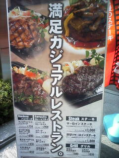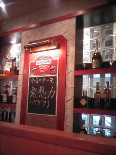 ランチタイムの時間はとっくに過ぎ、経験上こういう日はあまりいい店 に当たらないのが常日頃。 そんな中、そそられる看板を見つけました。 この辺でこんなファミレスみたいな看板は珍しいが、つぃつい写真のステーキ につられて店に入ってしまいました。 そこは、ステーキハウスには有りがちで、アメリカ西部を意識 しているらしく、チョッとしたリテールが施してあるがハッキリ言って 中途半端で余り意味がない。 私は例のごとく高カロリーなカレーハンバーグを注文。 そして、かなり待たされる。 私、ホント待つのイヤなんです。 ここで看板につられて入ったことを後悔。 そして、とどめにイヤなものを発見。 ↓ これ、従業員の今日のテーマらしい。 少なくとも、料理を早く出す発想力はなかったです。 やっぱり、遅いランチはハズレが多い。これ教訓・・・。 |