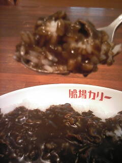 いかにもというネーミングが私を遠ざけていたようです。 今回は、やっぱり船場について語るんなら、一度は試してみようと思い、 トライしてみました。 船場カリーの特徴は何と言っても色です。(参照) 鳥賊墨とブラックペッパーのおかげで黒いんです。 あと、肉がうす切りなので食べやすく、ルーとの愛称もいいです。生卵を トッピングするとマイルドになって、またいいでしょう。 カレー激戦区の船場で、是非本場の船場カリーをご賞味ください。 |
