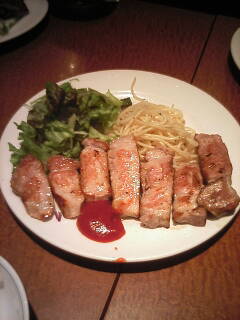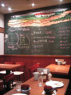 ここは何処? ここは船場の中央、文字通り船場センタービルB1。 我社の社員食堂みたいなもの。 今日も偶然女子社員と会いました。 この店、『エルンテ』(地図参照)というビアレストランで、昼間はステーキを 中心に、ボリューム満点のメニューが用意されています。 ここの名物は、オヒツで出てくるライス。 ひとりで行っても当然出てきます。 仲間で行くと、ご飯をよそう役が自然と生まれ、コミュニケーションが 図れます。『まるで小さなサザエさん一家やー。』(彦麻呂 風) ちなみに女子もOK。 横でウチの女子社員もご飯をほお張ってます。 ちなみに上記メニューは左から、デミグラスハンバーグ・牛ロースステーキ ・豚ロースステーキ。他にもサーモンステーキなど、ボリューム満点 のメニューがあります。 そうそう、スープお変わり自由です。 ただ忙しくなると、店のお姉さんの眉間にシワができるのでご注意 ください。 |